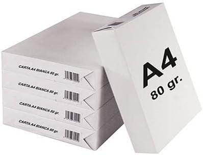 5 Risme Carta A4 80g, Bianca 80 gr/mq per Stampante e Fotocopie, Totale 2500 Fogli